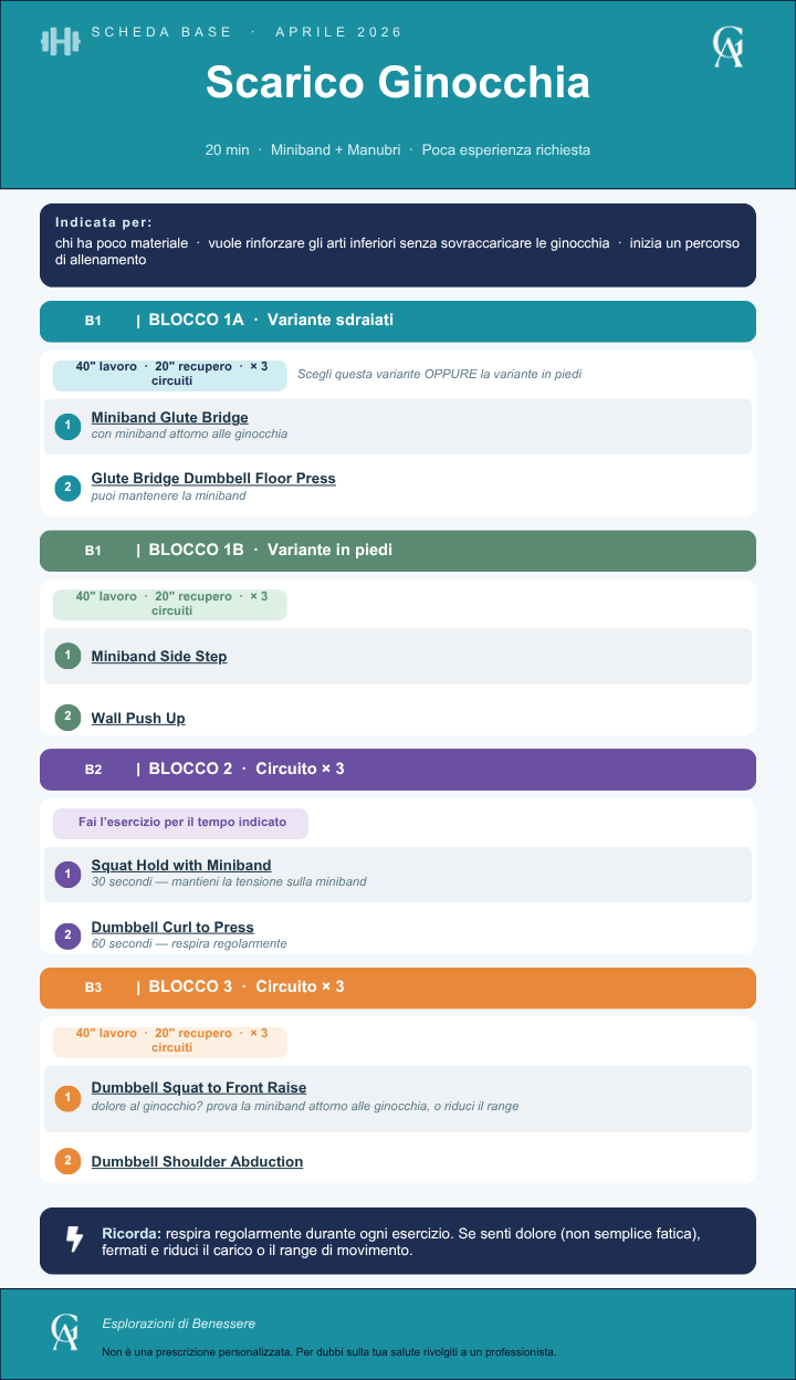 NB: se avete dolore alle ginocchia, provate ad utilizzare la miniband attorno alle ginocchia, o a ridurre l’arco di movimento.